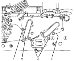 注意不同長(cháng)度螺栓的位置。不要拆下(X)位置上的螺栓。