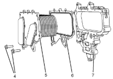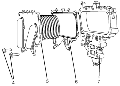 1確保冷卻器基體(5)清潔、無(wú)堵塞或損壞。確保隔板(7)清潔且無(wú)損壞。更換任何損壞的部件。