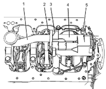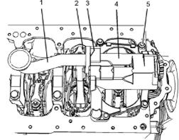 3卸下螺栓(5)。將Perkins1106A/C發(fā)動(dòng)機機油泵組件(4)從Perkins1106A/C發(fā)動(dòng)機缸體上卸下。