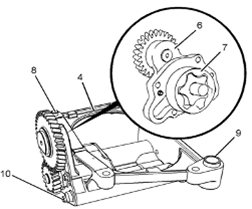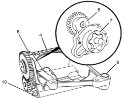 4如有必要,從Perkins1106A/C發(fā)動(dòng)機機油泵的前蓋組件(6)上卸下螺栓(10)。從Perkins1106A/C發(fā)動(dòng)機機油泵(4)上卸下前蓋組件(6)。