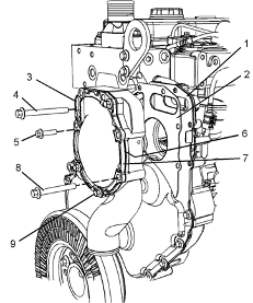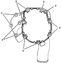 9.按圖93中的順序擰緊螺栓(4)、(5)、(8)和(9)至扭矩為22N·m(195lbin)。
