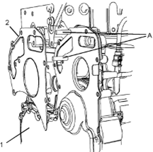 6對準Perkins1106A/C發(fā)動(dòng)機水泵(3)與工具(A)。將Perkins1106A/C發(fā)動(dòng)機水泵安裝到前蓋(1)上。