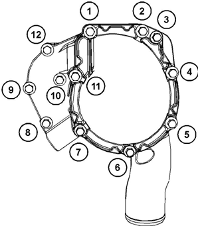 2如有必要,將蓋安裝到Perkins1106A/C發(fā)動(dòng)機水泵。遵循步驟2.a至2.d,安裝蓋。