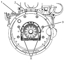 Perkins1106A/C發(fā)動(dòng)機機殼體-拆卸和安裝 (標準Perkins1106A/C發(fā)動(dòng)機機殼體) 拆卸步驟 開(kāi)始: a.拆下飛輪。有關(guān)正確的步驟,請參閱《Perkins1106A/C發(fā)動(dòng)機拆解和組裝》,“飛輪-拆卸”。 注意:保持所有零件清潔無(wú)雜質(zhì)。雜質(zhì)會(huì )造成快速磨損和縮短部件壽命。 1將螺栓(3)從Perkins1106A/C發(fā)動(dòng)機飛輪Perkins1106A/C發(fā)動(dòng)機機殼體(1)的位置(X)上拆下。 2將工具(A)安裝在Perkins1106A/C發(fā)動(dòng)機飛輪Perkins1106A/C發(fā)動(dòng)機機殼體(1)上的位置(X)。 3將適當的起吊設備安裝到Perkins1106A/C發(fā)動(dòng)機飛輪Perkins1106A/C發(fā)動(dòng)機機殼體上來(lái)支撐住Perkins1106A/C發(fā)動(dòng)機飛輪Perkins1106A/C發(fā)動(dòng)機機殼體。Perkins1106A/C發(fā)動(dòng)機飛輪Perkins1106A/C發(fā)動(dòng)機機殼體的重量約為40kg(88lb)。 4將螺栓(2)和其余螺栓(3)從Perkins1106A/C發(fā)動(dòng)機飛輪Perkins1106A/C發(fā)動(dòng)機機殼體(1)上拆下。 5使用適當的起吊設備,將Perkins1106A/C發(fā)動(dòng)機飛輪Perkins1106A/C發(fā)動(dòng)機機殼體(1)從Perkins1106A/C發(fā)動(dòng)機缸體上卸下。 6.拆下防塵密封件(5)。 7.如有必要,將定位銷(xiāo)(4)從Perkins1106A/C發(fā)動(dòng)機缸體上卸下。 安裝程序(標準Perkins1106A/C發(fā)動(dòng)機機殼體) 注意:保持所有零件清潔無(wú)雜質(zhì)。雜質(zhì)會(huì )造成快速磨損和縮短部件壽命。 1.確保Perkins1106A/C發(fā)動(dòng)機飛輪Perkins1106A/C發(fā)動(dòng)機機殼體清潔且無(wú)損壞。如有必要,更換Perkins1106A/C發(fā)動(dòng)機飛輪Perkins1106A/C發(fā)動(dòng)機機殼體。 2檢查Perkins1106A/C發(fā)動(dòng)機曲軸后油封(6)有無(wú)泄漏。如果觀(guān)察到漏油,更換Perkins1106A/C發(fā)動(dòng)機曲軸后油封。有關(guān)正確的步驟,請參閱《Perkins1106A/C發(fā)動(dòng)機拆解和組裝》,“Perkins1106A/C發(fā)動(dòng)機曲軸后油封-拆卸”和《Perkins1106A/C發(fā)動(dòng)機拆解和組裝》,“Perkins1106A/C發(fā)動(dòng)機曲軸后油封-安裝”。 3清潔Perkins1106A/C發(fā)動(dòng)機缸體后表面。如有必要,將定位銷(xiāo)(4)安裝到Perkins1106A/C發(fā)動(dòng)機缸體上。 4將工具(A)安裝到Perkins1106A/C發(fā)動(dòng)機缸體上。 5安裝防塵密封件(5)。 6將適當的起吊設備安裝到Perkins1106A/C發(fā)動(dòng)機飛輪Perkins1106A/C發(fā)動(dòng)機機殼體上。Perkins1106A/C發(fā)動(dòng)機飛輪Perkins1106A/C發(fā)動(dòng)機機殼體的重量約為40kg(88lb)。 7使用起吊設備對準Perkins1106A/C發(fā)動(dòng)機飛輪Perkins1106A/C發(fā)動(dòng)機機殼體(1)與工具(A)。將Perkins1106A/C發(fā)動(dòng)機飛輪Perkins1106A/C發(fā)動(dòng)機機殼體安裝到Perkins1106A/C發(fā)動(dòng)機缸體上。 8安裝螺栓(2)和螺栓(3)。 9拆下工具(A)。安裝其余的螺栓(3)。 10.當安裝了8.8級別的螺栓時(shí),按照步驟10.a至步驟10.b。 a.擰緊螺栓(3)至扭矩為63N·m(46lbft)。 b.擰緊螺栓(2)至扭矩為78N·m(58lbft)。 11.當安裝了10.9級別的螺栓時(shí),按照步驟11.a至步驟11.b。 a.擰緊螺栓(3)至扭矩為115N·m(85lbft)。 b.擰緊螺栓(2)至扭矩為190N·m(140lbft)。 12.檢查Perkins1106A/C發(fā)動(dòng)機飛輪Perkins1106A/C發(fā)動(dòng)機機殼體(1)和Perkins1106A/C發(fā)動(dòng)機曲軸的對準。有關(guān)更多信息,請參閱《系統操作、測試和調整》,“Perkins1106A/C發(fā)動(dòng)機飛輪Perkins1106A/C發(fā)動(dòng)機機殼體-檢查”。 結束: a.安裝飛輪。有關(guān)正確的步驟,請參閱《Perkins1106A/C發(fā)動(dòng)機拆解和組裝》,“飛輪-安裝”。