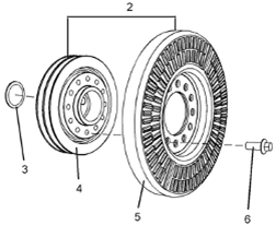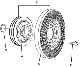 b.從Perkins1106A/C發(fā)動(dòng)機曲軸皮帶輪組件(2)上拆下螺栓(6)。