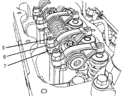 7松開(kāi)所有搖臂(7)上的螺母(6)。擰松所有搖臂(7)上的調節器(5),直到所有氣門(mén)完全閉合。
