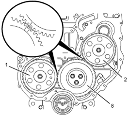 8標記齒輪(1)、(2)和(8)以便顯示對準位置。請參閱插圖123。