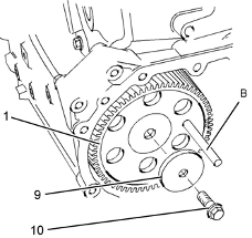 4安裝Perkins1106A/C發(fā)動(dòng)機凸輪軸齒輪(1)。松散地安裝Perkins1106A/C發(fā)動(dòng)機凸輪軸齒輪的螺栓(10)和墊圈(9)。請參閱《Perkins1106A/C發(fā)動(dòng)機拆解和組裝》,“Perkins1106A/C發(fā)動(dòng)機凸輪軸齒輪-拆卸和安裝”以了解正確程序。