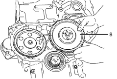 11.拆卸Perkins1106A/C發(fā)動(dòng)機惰齒輪(8)。請參閱《Perkins1106A/C發(fā)動(dòng)機拆解和組裝》,“Perkins1106A/C發(fā)動(dòng)機惰齒輪-拆卸和安裝”以了解正確程序。