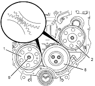 6安裝Perkins1106A/C發(fā)動(dòng)機惰齒輪(8)。確保齒輪(1)和齒輪(8)上的正時(shí)標記已對準。確保齒輪正確嚙合。擰緊Perkins1106A/C發(fā)動(dòng)機惰齒輪(8)的螺栓至扭矩為44N·m(32lbft)。請參閱《Perkins1106A/C發(fā)動(dòng)機拆解和組裝》,“Perkins1106A/C發(fā)動(dòng)機惰齒輪-拆卸和安裝”以了解正確程序。