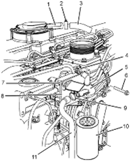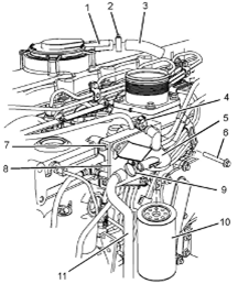 1拆下呼吸器的濾罐(10)。請參閱《Perkins1106A/C發(fā)動(dòng)機操作和保養手冊》,“Perkins1106A/C發(fā)動(dòng)機曲軸箱呼吸器(濾罐)-更換”。