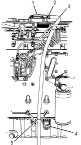 6將軟管(3)連接到Perkins1106A/C發(fā)動(dòng)機氣門(mén)機構蓋(1)和Perkins1106A/C發(fā)動(dòng)機曲軸箱呼吸器的濾清器座(5)上。