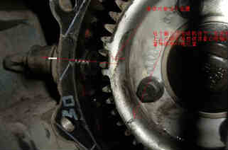7.懷疑到曲軸正時(shí)齒輪移位,于是拆檢齒輪室,發(fā)現曲軸正時(shí)齒輪已經(jīng)崩齒且移位圖