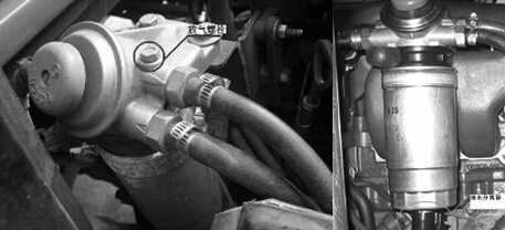 燃油濾清器放氣示意圖                            放水示意圖