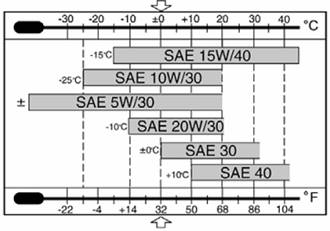 應根據穩定的外界空氣溫度按此圖表選擇粘度合適的潤滑油。
