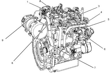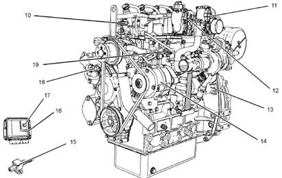 本部分中的插圖顯示工業(yè)用發(fā)動(dòng)機上傳感器和其他電氣部件的典型位置。具體發(fā)動(dòng)機可能因應用而略有不同。操作部分超速(OVERSPEED