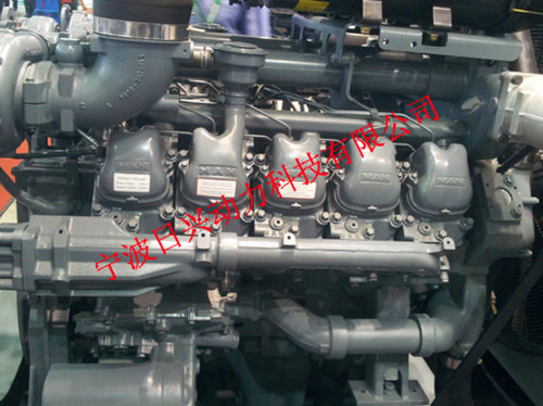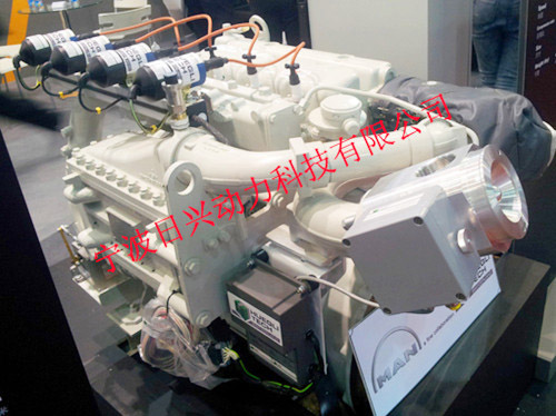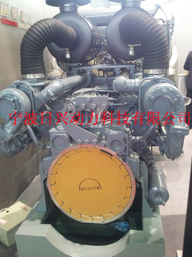 德國曼MAN工業(yè)重型發(fā)動(dòng)機、四沖程、直接噴射、水冷、廢氣渦輪增壓及中間冷卻。