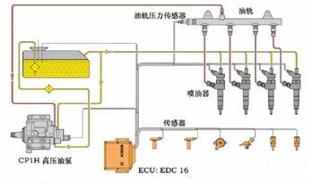 • 共軌系統的高壓部分被分成高壓發(fā)生器(高壓泵)、壓力蓄能器(共軌管)和燃油計量元件(電磁閥)。 主要的零部件:配有電磁閥的高壓油泵(CP1H型) 、共軌管、共軌壓力傳感器、噴油器。