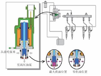 • 高壓油泵是高壓回路和低壓回路的分界面,在所有工況下,它主要負責在車(chē)輛的整個(gè)使用壽命中供給足夠的高壓燃油,同時(shí)還必須保證為使發(fā)動(dòng)機迅速起動(dòng)所需要的額外的供油量和壓力要求。