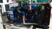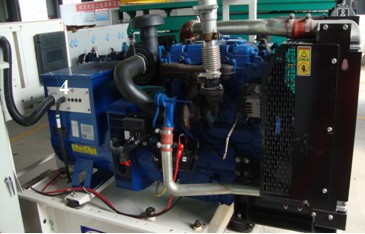 在柴油機汽缸內,經(jīng)過(guò)空氣濾清器過(guò)濾后的潔凈空氣與噴油嘴噴射出的高壓霧化柴油充分混合,在活塞上行的擠壓下,體積縮小,溫度迅速升高,達到柴油的燃點(diǎn)。柴油被點(diǎn)燃,混合氣體劇烈燃燒,體積迅速膨脹,推動(dòng)活塞下行,稱(chēng)為‘做功’。各汽缸按一定順序依次做功,作用在活塞上的推力經(jīng)過(guò)連桿變成了推動(dòng)曲軸轉動(dòng)的力量,從而帶動(dòng)曲軸旋轉。將無(wú)刷同步交流發(fā)電機與柴油機曲軸同軸安裝,就可以利用柴油機的旋轉帶動(dòng)發(fā)電機的轉子,利用‘電磁感應’原理,發(fā)電機就會(huì )輸出感應電動(dòng)勢,經(jīng)閉合的負載回路就能產(chǎn)生電流。發(fā)電機主要由磁性材料制造多個(gè)南北極交替排列的永磁鐵(稱(chēng)為轉子)和硅鑄鐵制造并繞有多組串聯(lián)線(xiàn)圈的電樞線(xiàn)圈(稱(chēng)為定子)組成。